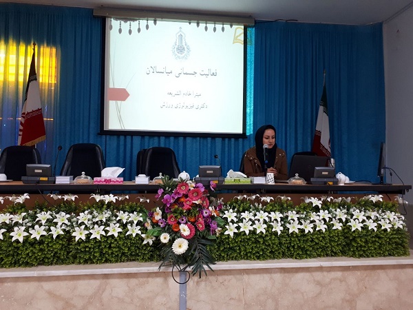 سپس در ادامه نیز میترا خادم الشریعه دکتری فیزیولوژی ورزش، فعاليت جسماني ميانسالان را آموزش دادند و در پايان، تمرين عملي حرکات ورزشی جهت آموزش به میانسالان با مشاركت مدعوين كارگاه صورت پذيرفت.