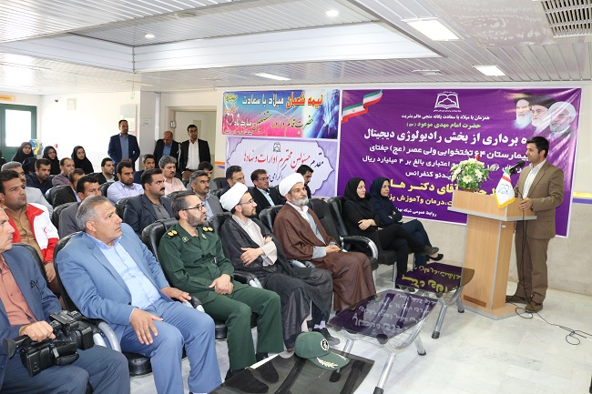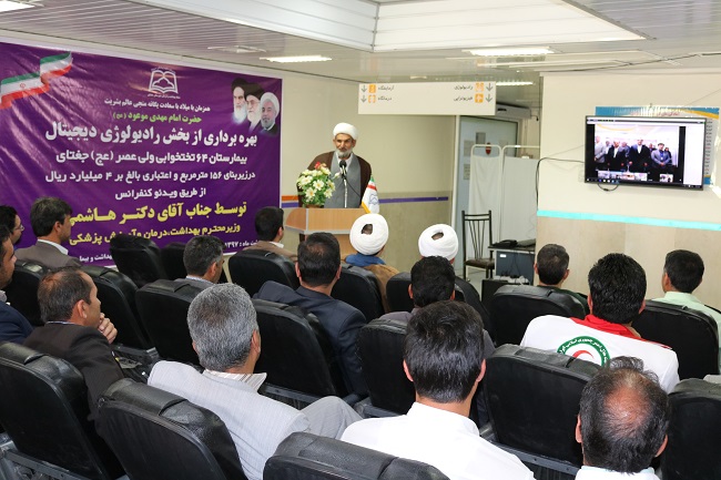 در ادامه از طریق ویدئو کنفرانس با حضور وزیر بهداشت و مسئولین دانشگاه، دکتر روستا زاده ریاست شبکه بهداشت و درمان ضمن خوش آمد گویی و تبریک ایام شعبانیه  و تشکر از دکتر هاشمی وزیر بهداشت و درمان کشور و سایر مسئولین دانشگاه  درمورد مشخصات پروژه رادیولوژی دیجیتال بیمارستان ومزایای آن که شامل: افزایش کیفیت موثر تصویر، صرفه جویی در وقت و هزینه و سرعت بالای تهیه تصویر، امکان کپی فیلم با سهولت بیشتر، افزایش تصاویر بایگانی ، امکان ارسال تصاویر از طریق اینترنت به مراکز درمانی و امکان دسترسی پزشک به تصاویر به محض انجام تصویر برداری می باشد، بیان نمودند.  سپس  پروژه با دستور دکتر هاشمی، توسط موحدی پور افتتاح، و در پایان از میهمانان تقدیر و پذیرایی به عمل آمد.