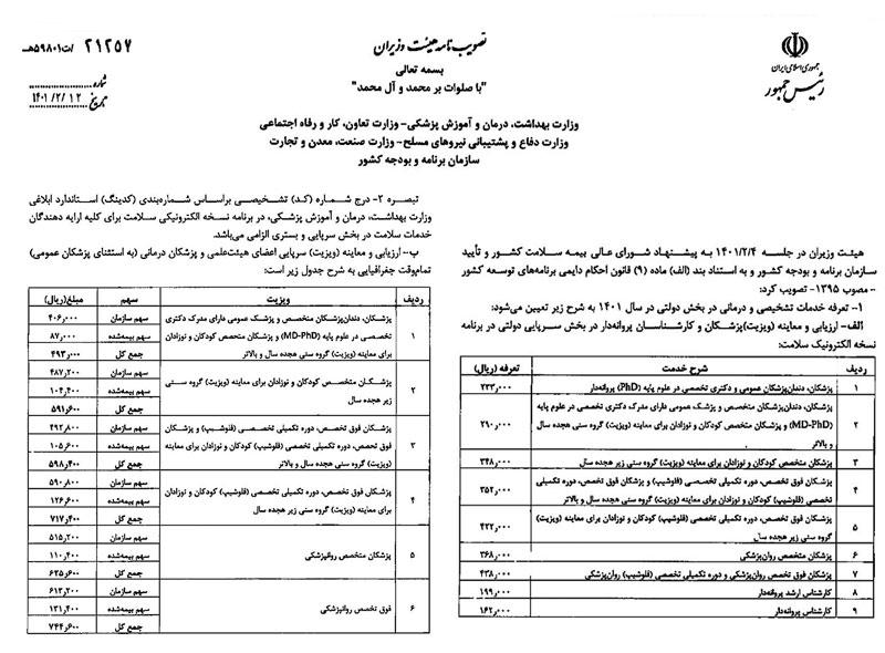 تعرفه خدمات تشخیصی و درمانی در بخش دولتی سال 1401