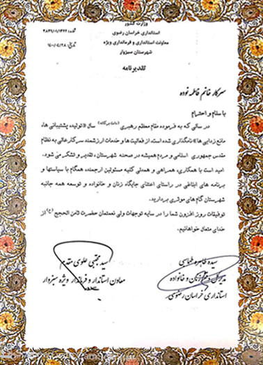 تقدیرازمعاون بهداشتی دانشگاه علوم پزشکی سبزوار