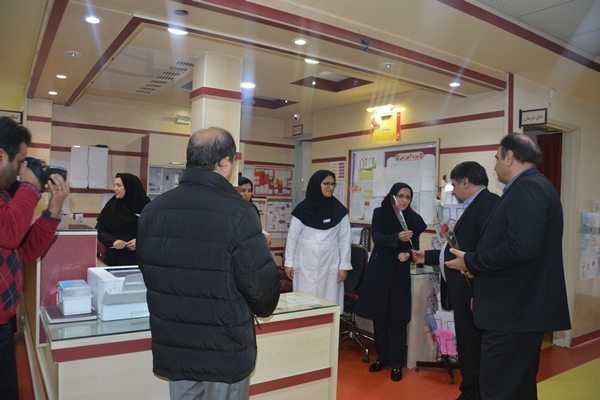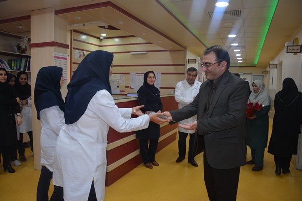 به مناسبت روز پرستار ریاست محترم دانشگاه جناب آقای دکتر مسلم به همراه فرماندار محترم ونماینده محترم مجلس جناب آقای سبحانی و هیات همراه با اهدای گل از پرستاران بیمارستان شهیدان مبینی تقدیر به عمل آوردند .