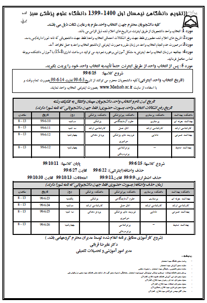 روابط عمومی معاونت آموزشی؛ تقویم دانشگاهی نیمسال اول 1400-1399 دانشگاه علوم پزشکی سبزوار گروه خبری : دانشکده پرستاری مامایی,دانشکده پیراپزشکی,دانشکده پزشکی,معاونت آموزشی,دانشکده بهداشت,سایراخبار دانشکده پزشکی,دانشکده پرستاری جوین,سایر اخبار دانشکده پیراپزشکی کد خبر : 11967 لینک کوتاه : https://medsab.ac.ir/ZWH9 کلمات کلیدی