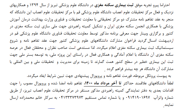 روابط عمومی معاونت تحقیقات و فناوری؛ ثبت بیماری سکته مغزی گروه خبری : معاونت تحقیقات و فناوری کد خبر : 13251 لینک کوتاه : https://medsab.ac.ir/Zsna کلمات کلیدی