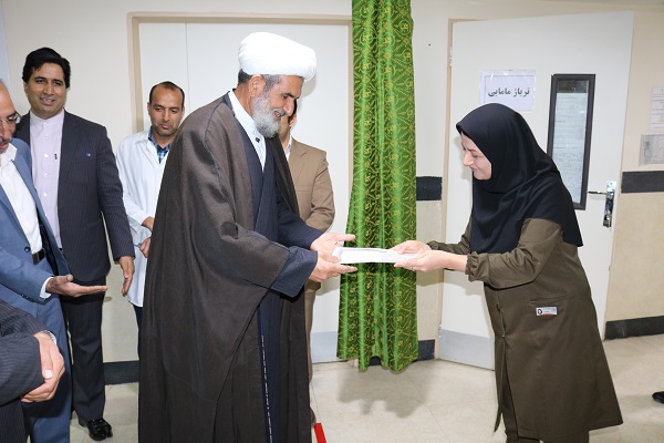 در ادامه مسئولین با حضور در بخش های مختلف بیمارستان از پرستاران حاضر با اهدای گل و شیرینی تقدیر کردند.