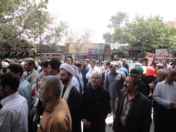 روابط عمومی شبکه بهداشت ودرمان جغتای/ درآخرین جمعه ماه مبارک رمضان مورخه هیجدهم خردادماه، به مناسبت روز جهانی قدس و درحمایت ازمردم مظلوم فلسطین، کارکنان شبکه بهداشت و درمان، پرسنل بیمارستان ولی عصر(عج) و بسیجیان کانون بسیج جامعه پزشکی شهرستان جغتای به همراه دیگر اقشارمردم، با شرکت در راهپیمایی بزرگ روزقدس و مراسم باشکوه نمازجمعه، ضمن تجدید میثاق با ولایت و آرمانهای انقلاب اسلامی، برائت خود را از اسرائیل غاصب، آمریکا وکشورهای هم پیمان آنها اعلام  نمودند.