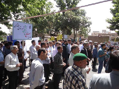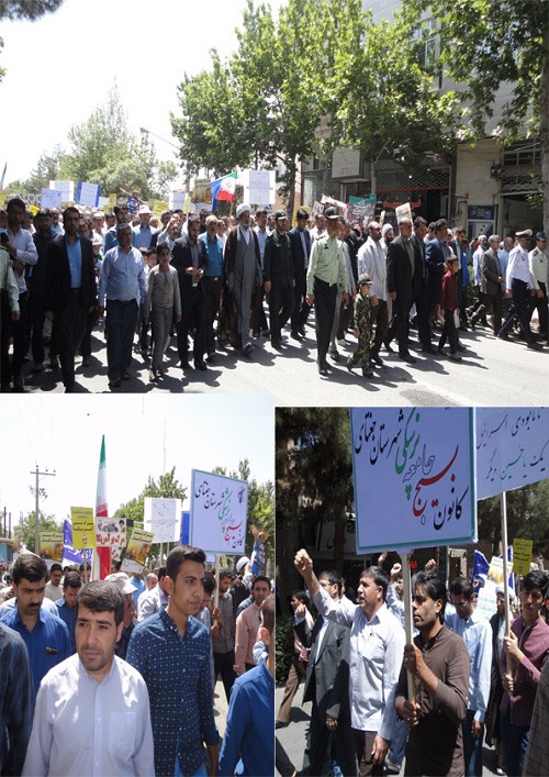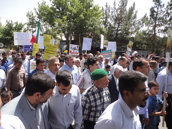 درآخرین جمعه ماه مبارک رمضان مورخه دوم تیرماه ، به مناسبت روز جهانی قدس و درحمایت ازمردم مظلوم فلسطین ، کارکنان شبکه بهداشت و درمان ، پرسنل بیمارستان ولی عصر(عج) و بسیجیان کانون بسیج جامعه پزشکی شهرستان جغتای به همراه دیگر اقشارمردم با شرکت در راهپیمایی روزقدس ومراسم باشکوه نمازجمعه ، ضمن تجدید میثاق باولایت و آرمانهای انقلاب اسلامی ، برائت خود را از اسرائیل غاصب ،آمریکا وکشورهای هم پیمان آنها اعلام  نمودند.