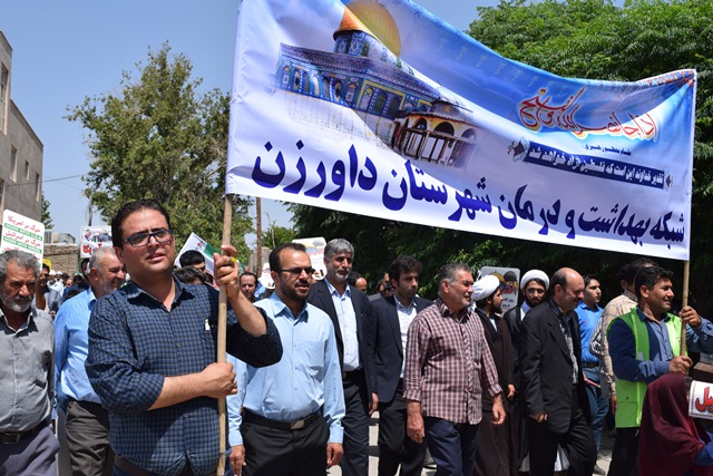 حضور سرپرست و پرسنل شبکه بهداشت و درمان شهرستان داورزن در راهپیمایی عظیم روز قدس در داورزن