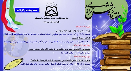 معاونت تحقیقات و فناوری دانشگاه علوم پزشکی سبزوار بمناسبت هفته پژوهش برگزار میکند.