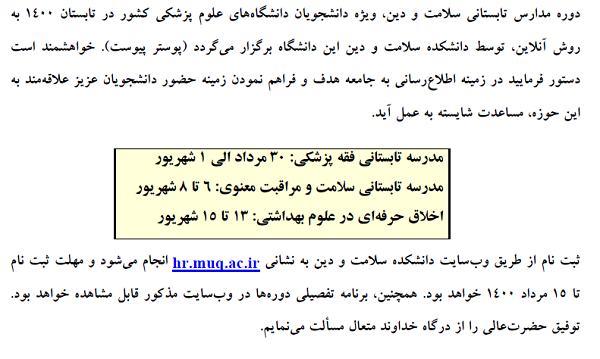 ششمین دوره مدارس تابستانی سلامت و دین 1400