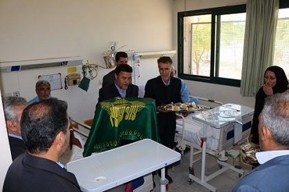 خادمین حامل پرچم گنبد مبارک امام رئوف بودند. بیماران و همراهان آنها، پرسنل شبکه و بیمارستان ضمن استقبال پرشور از خادمین، پرچم متبرک حرم رضوی را زیارت کردند.
