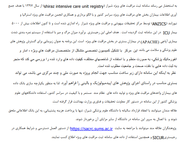 فراخوان دعوت به همکاری در سامانه ثبت مراقبت های ویژه شیراز