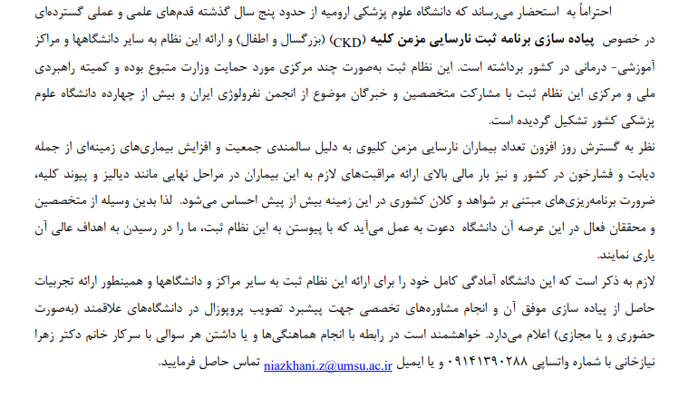 روابط عمومی معاونت تحقیقات و فناوری دانشگاه؛ فراخوان همکاری در نظام ثبت ملی نارسایی مزمن کلیوی گروه خبری : معاونت تحقیقات و فناوری,اخبار واحدها کد خبر : 13411 لینک کوتاه : https://medsab.ac.ir/Zgqa کلمات کلیدی