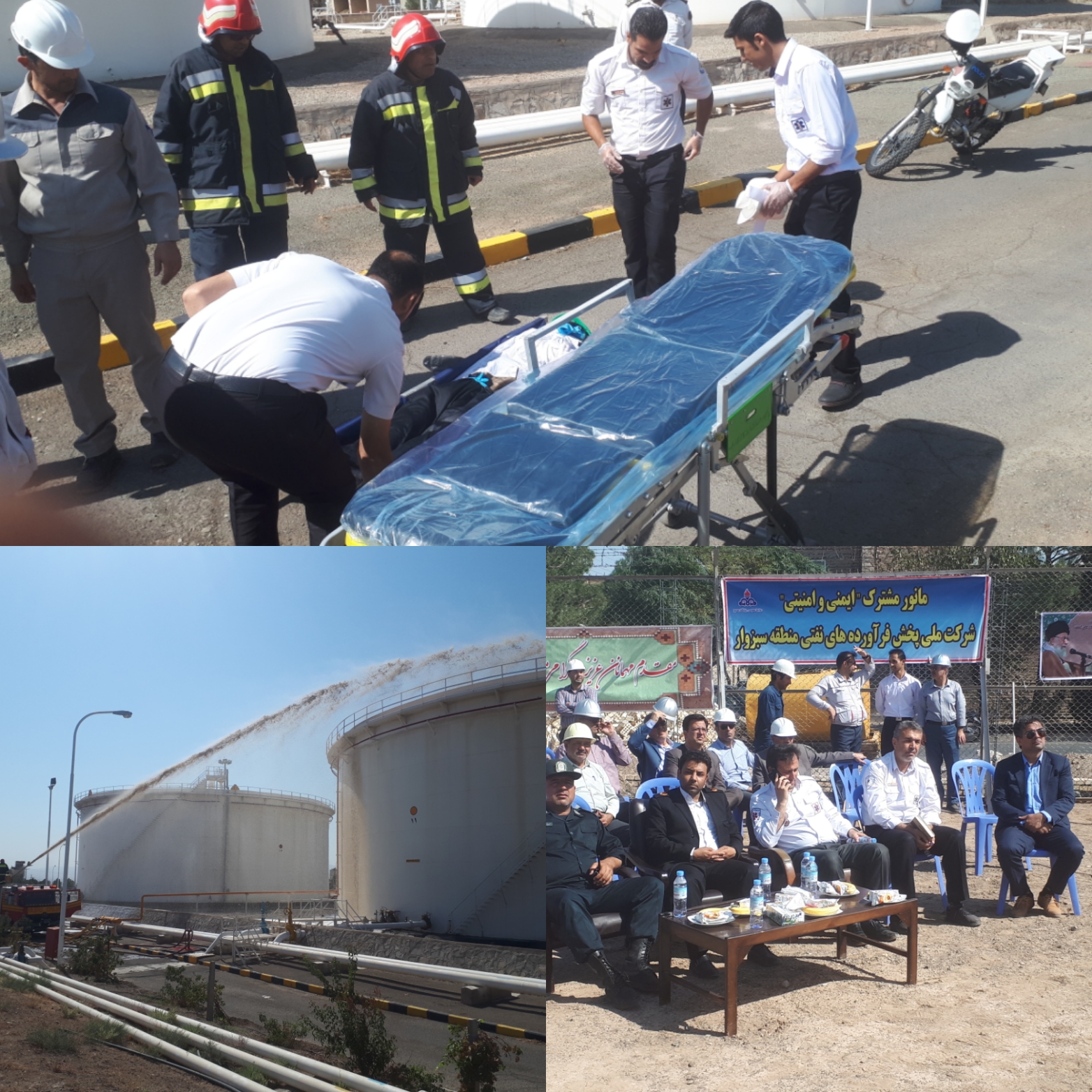 مانور ایمنی و امنیت با هدف ارتقای توانمندی کارکنان حراست و واحد ایمنی شرکت نفت ، نیروهای عملیاتی واکنش سریع اورژانس 115 و پلیس امنیت شهرستان در محل انبار نفت شهید محمدیانی برگزار گردید.