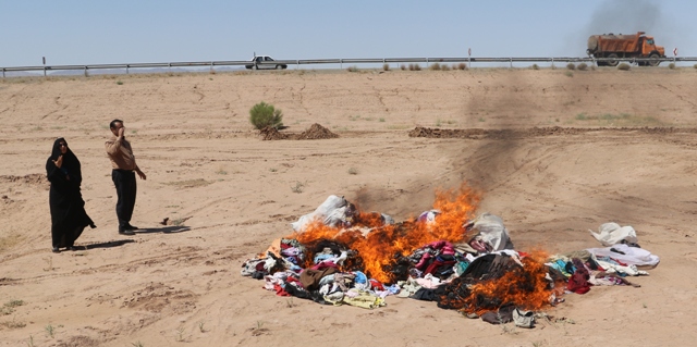 مقدار 250 کیلو لباس ( مستعمل دست دوم) و غیر بهداشتی ایرانی که توسط ماموران نیروی انتظامی از لباس فروشیهای سطح شهر جمع آوری گردید در حضور کارشناس بهداشت محیط این معاونت در محل خارج از شهر ( زمین های اطراف روستای دولت آباد ) معدوم گردید