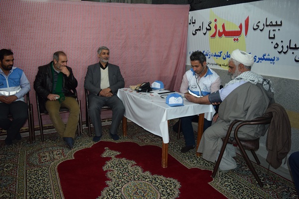 تیم پزشکی و سلامت شبکه بهداشت و درمان به سرپرستی و حضور کامل مهندس نظرزاده ضمن ویزیت رایگان بیماران توسط دکتر کبیری پزشک داوطلب جمعیت هلال احمر، قند خون و فشارخون مراجعین را اندازه گیری نموده و در راستای اهداف هفته ملی مبارزه با بیماری ایدز، به انجام غربالگری بیماریها پرداختند.