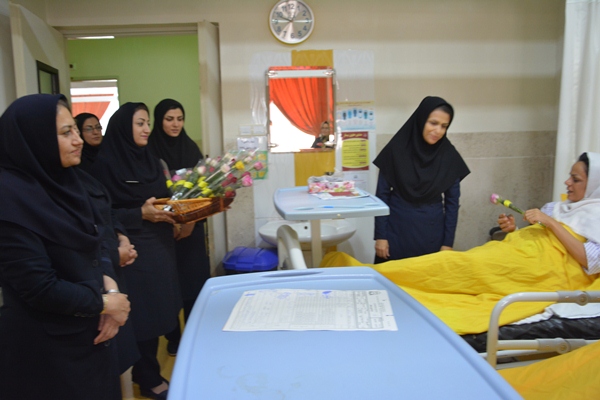 سرکار خانم دکتر سویزی ریاست محترم بیمارستان و سرکار خانم عزیزی مدیر محترم پرستاری با اهدای گل به مادران این روز را به همه مادران تبریک عرض نمودند .