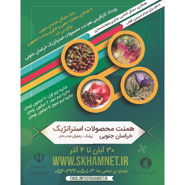 احتراماً به استحضار میرساند بنیاد نخبگان استان خراسان جنوبی در نظر دارد با عنایت به مشکلات و چالش های موجود در پیش رو محصولات استراتژیک این استان، رویداد ملی کارآفرینی ملی هم نت (همکاری، مشکل گشایی، نوآوری و توانمند سازی) محصولات استراتژیک استان شامل محصولات زرشک، زعفران، عناب و انار را با همکاری و حما یت های معاونت نوآوری و تجاری سازی فناوری معاونت علمی و فناوری ریاست جمهوری و با حضور صد نفر از متخصصین، نخبگان و استعدادهای برتر کشوری و استانی در  29 آبان ماه لغایت 4 آذرماه سال جاری برگزار نماید. در این رویداد فضایی برای مواجهه با فرصت های واقعی کسب و کار، نیازها و چالشهای صنعت و بازار ایجاد شده و با تشکیل تیم ها، ایده پردازی و توسعه ایده به دنبال آموزش، مشاوره، ارزیابی توسط داوران و سرمایه گزاران و در نهایت برای تیم های برگزیده امکان شکل گیری هسته های کارآفرینی فراهم می گردد.