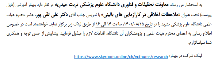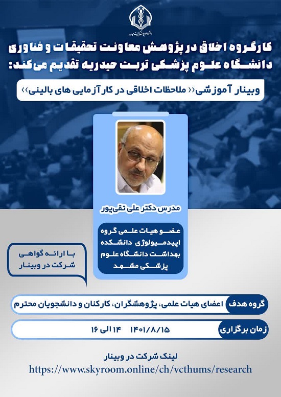 وبینار آموزشی «ملاحظات اخلاقی در کارآزمایی های بالینی»
