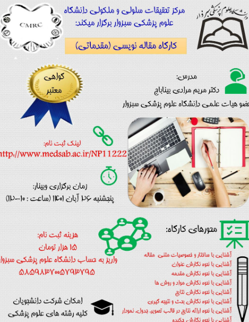 برگزاری وبینار "مقاله نویسی مقدماتی" مورخ 1401/08/26ساعت 10-12