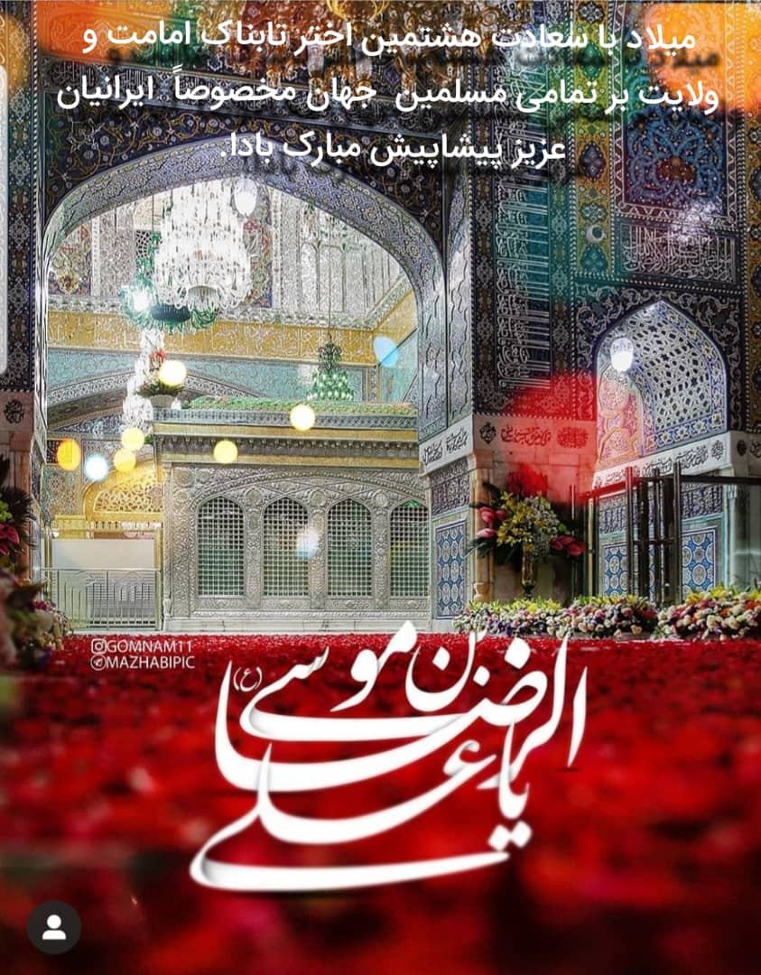 ولادت باسعادت هشتمین اختر تابناک آسمان امامت وولایت را به عموم هم میهنان گرامی تبریک وتهنیت عرض می نماید