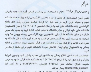 پذیرش استعداد درخشان ( دانشکده علوم قرآنی مشهد )