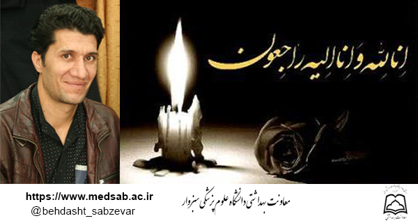 با نهايت تأسف و تأثر درگذشت ناگهاني همكار عزيزمان آقای علی اصغر خداشاهی بهیار مرکز خدمات جامع سلامت حسین آباد (شبکه بهداشت و درمان جغتای) را به كليه همكاران و به ويژه خانواده محترم آن مرحوم تسليت عرض مي نمائيم.