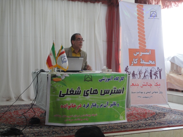 روابط عمومی شبکه بهداشت ودرمان جغتای/ در راستای شعار سالروز جهانی بهداشت  حرفه ای کارگاه آموزشی استرس های شغلی وتأثیر آن بررفتار فرد در خانواده با حضور دکتر حنیف پور مسئول آموزش و پژوهش امور شوراها دراستانداری خراسان رضوی ، مسئولین وکارکنان نهادها وادارات شهرستان جغتای ،مسئول واحدهای بهداشت حرفه ای معاونت بهداشتی ، شبکه های بهداشت ودرمان جوین ،خوشاب ، داورزن ، پرسنل شبکه جغتای ودانشجویان بهداشت حرفه ای دانشگاه درمورخه 1395/3/10 در محل هتل رضای جغتای برگزار شد.