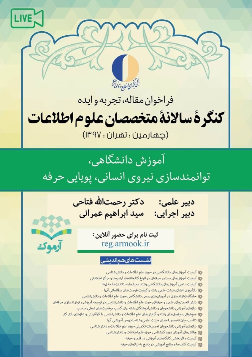 چهارمین کنگره سالانه متخصصان علوم اطلاعات درتاریخ 26 و 27 آبان ماه سال جاری در تهران برگزار می‌گردد.