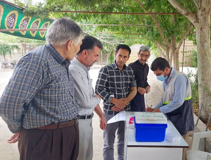 استقرار تیم سیار واکسیناسیون کرونا شبکه بهداشت و درمان جوین در محل برگزاری نماز جمعه