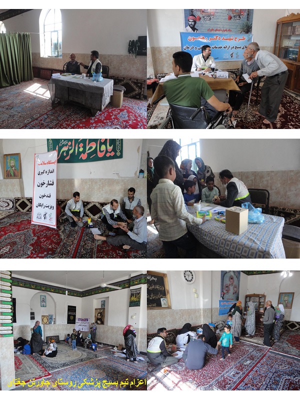 به مناسبت هفته دفاع مقدس کانون بسیج جامعه پزشکی شهرستان جغتای با همکاری ناحیه مقاومت و شبکه بهداشت و درمان، تیم پزشکی طرح شهیدرهنمون شامل(پزشک،دندانپزشک،ماما،پرستار،داروخانه وکارشناس سلامت خانواده،بهداشت روان،بهداشت محیط،حرفه ای وعمومی)به روستای جاورتن اعزام نمود.