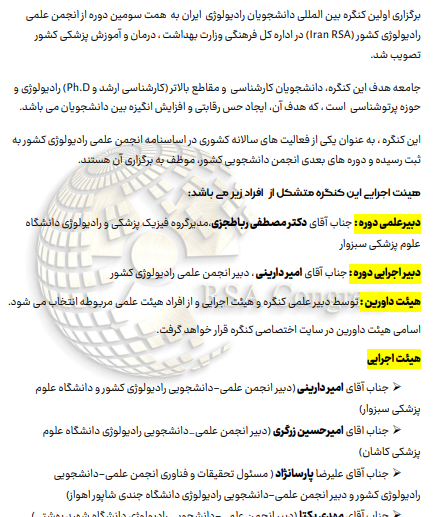 اعضای کمیته علمی «اولین کنگره بین‌المللی دانشجویان رادیولوژی کشور» معرفی شدند