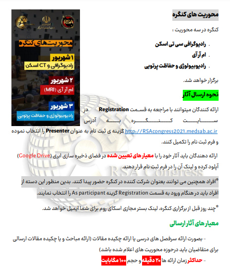 به گزارش روابط عمومی معاونت آموزشی، نخستین کنگره بین‌المللی انجمن علمی دانشجویان رادیولوژی کشور به صورت مجازی طی روزهای اول تا سوم شهریور ماه برگزار خواهد شد و جامعه هدف آن شامل دانشجویان کارشناسی رادیولوژی و مقاطع بالاتر مربوطه است و در این کنگره درخصوص مباحث و مقالات دانشجویان در این زمینه، بحث و تبادل نظر خواهد شد.