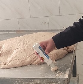 در این بازدید میدانی علاوه بر چک لیست بازدید های دوره ای ،واکسیناسیون و میزان رعایت پروتکلهای بهداشتی ،با نمونه برداری شیمیایی میزان کیفیت و مقدار نمک و PH خمیر نانوایی ها هم بررسی شد.