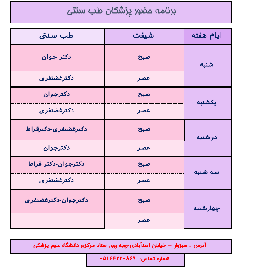 برنامه حضور پزشکان کلینیک طب سنتی