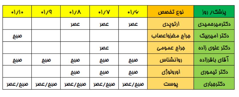 برنامه حضور پزشکان کلینیک ویژه در نوروز 1401