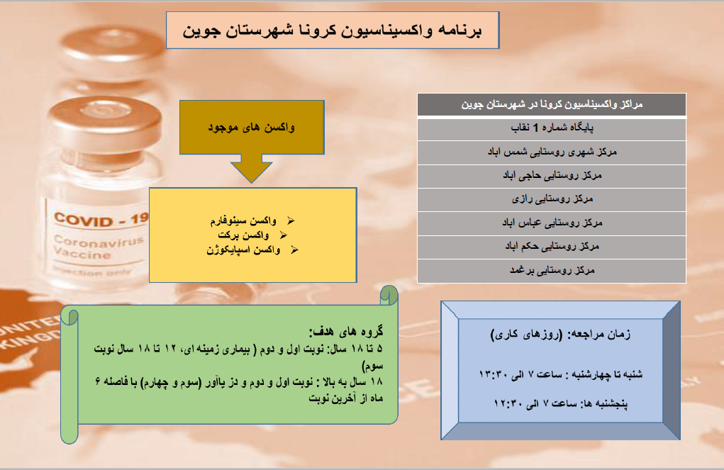 برنامه واکسیناسیون کرونا شهرستان جوین