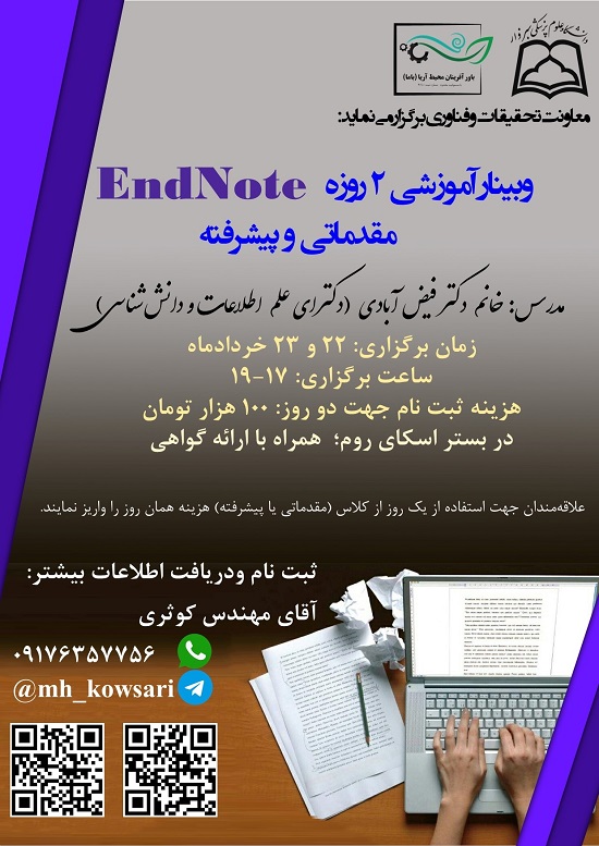 برگزاری وبینار آموزشی EndNote مقدماتی و پیشرفته
