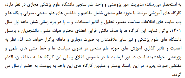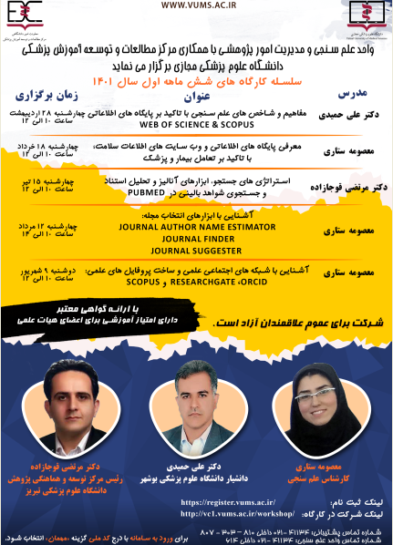 برگزاری کارگاه های شش ماهه اول سال 1401 واحد علم سنجی مدیریت امور پژوهشی دانشگاه علوم پزشکی مجازی