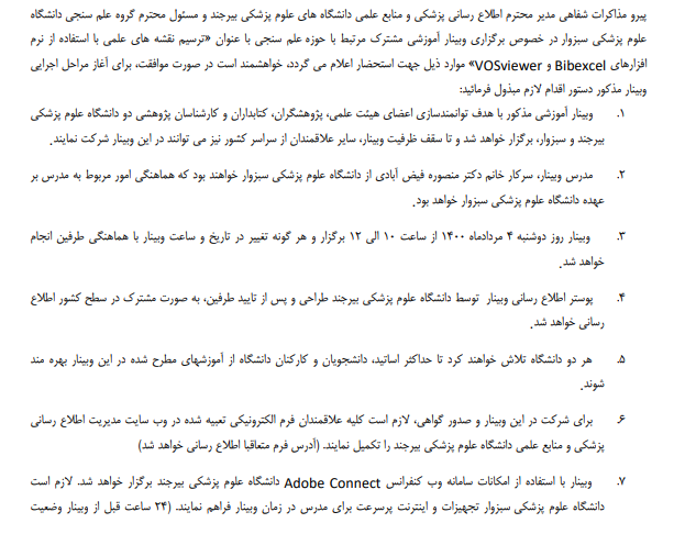 تفاهم نامه همکاری در برگزاری وبینار آموزشی در حوزه علم سنجی - دانشگاه علوم پزشکی بیرجند