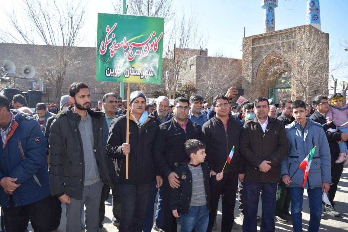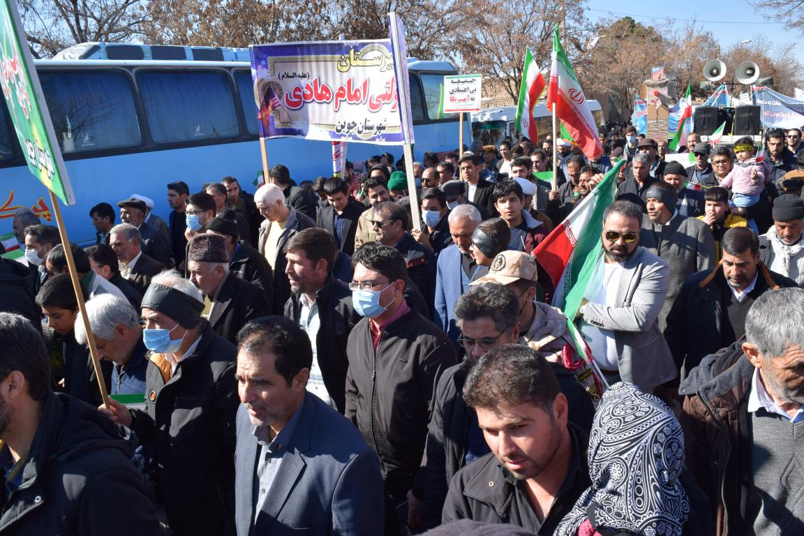 رئیس،مدیر و دیگر پرسنل بیمارستان جوین همراه با سایر هموطنان با حضور در راهپیمایی گسترده ی ۲۲ بهمن، چهل و چهارمین سالگرد پیروزی انقلاب اسلامی را گرامی داشتند و فریاد "مرگ بر آمریکا" و "مرگ بر اسرائیل" سر دادند و نشان دادند که هیچ کشوری نمی تواند برای سرنوشت این ملت شریف و همیشه در صحنه تعیین تکلیف کند.
