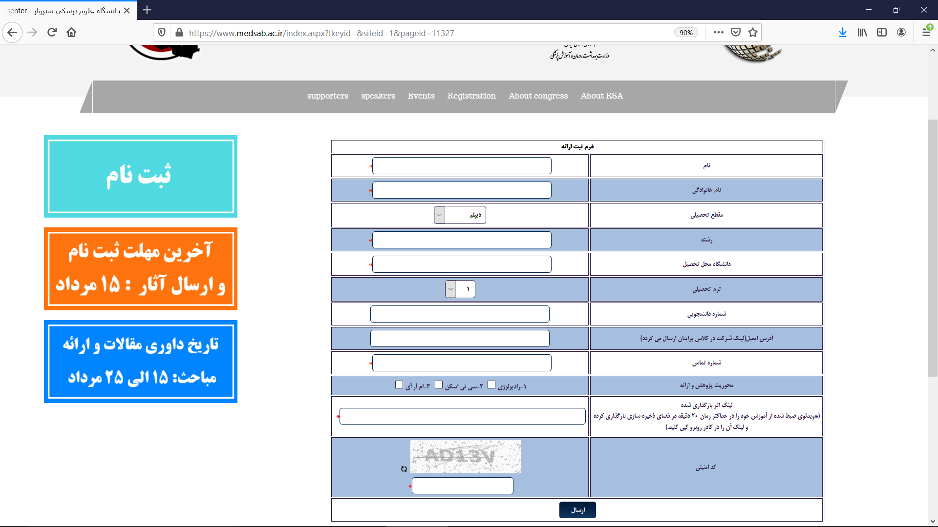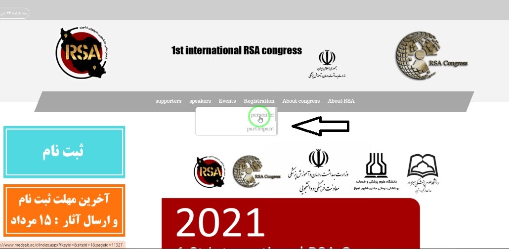 گام چهارم: وارد شدن به وب سایت کنگره ، کلیک بر Registration  ، انتخاب As presenter