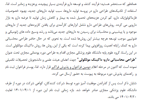 دوره کوتاه مدت طراحی محاسباتی دارو