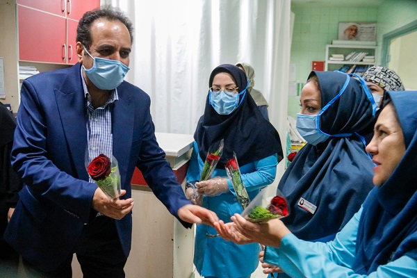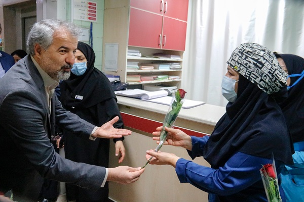 قدردانی از پرستاران بیمارستان شهیدان مبینی با اهدا گل