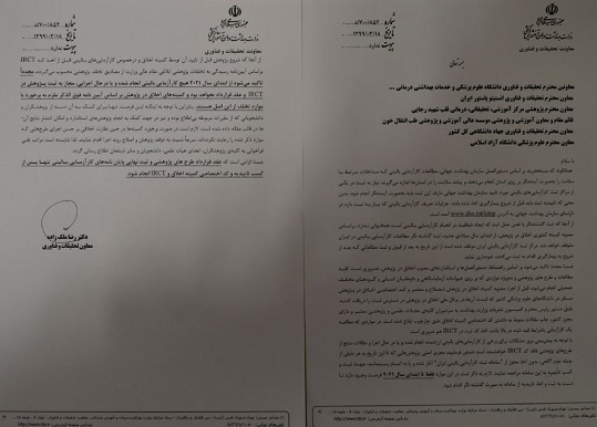 از آنجا که شروع پژوهش قبل از تایید آن توسط کمیته اخلاق و درخصوص کارآزمایی های بالینی قبل از اخذ کد،IRCT براساس آیین نامه رسیدگی به تخلفات پژوهشی ابلاغی مقام عالی وزارت از مصادیق تخلف پژوهشی محسوب میگردد.