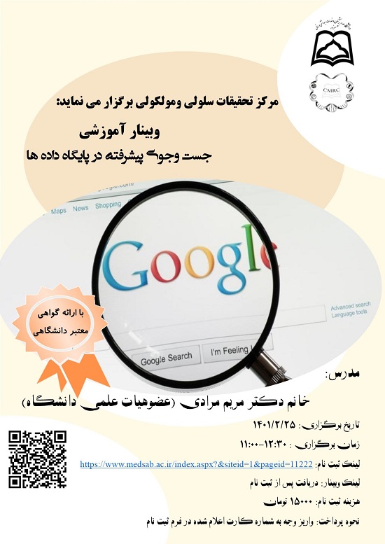 وبینار آموزشی"جست وجوی پیشرفته در پایگاه داده ها" مورخ 25/2/1401 ساعت 12-10