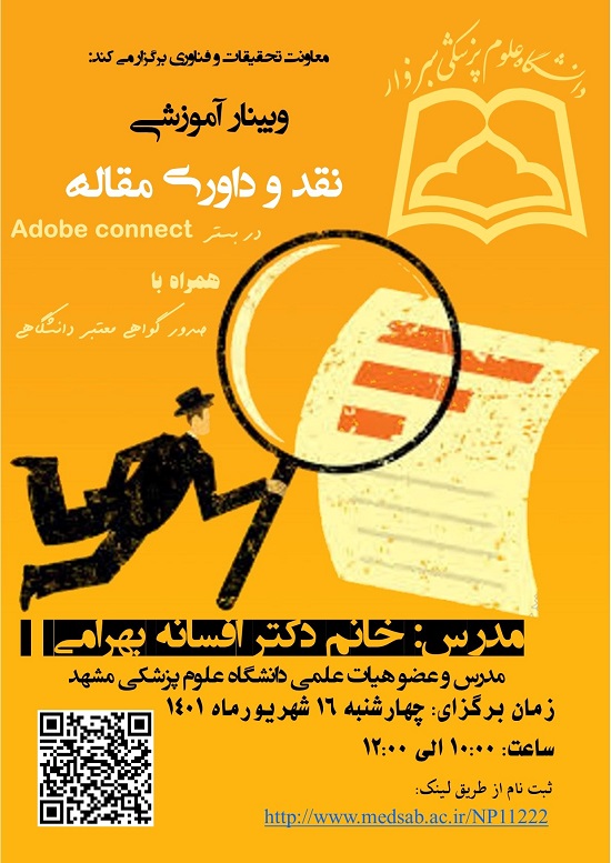 وبینار آموزشی"نقد و داوری مقاله" مورخ 16/06/1401 ساعت 10-12 برگزار می گردد