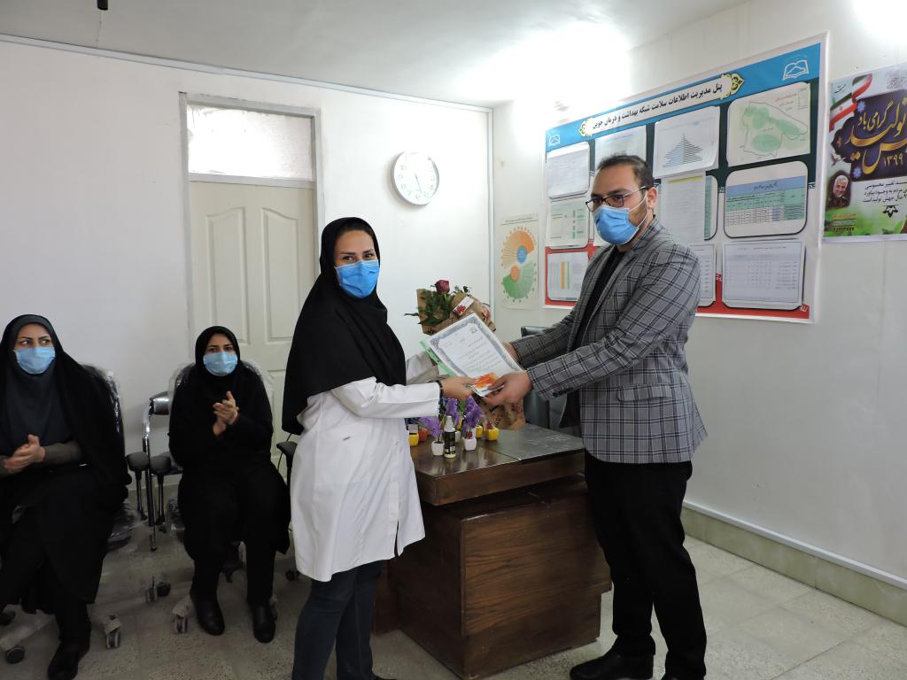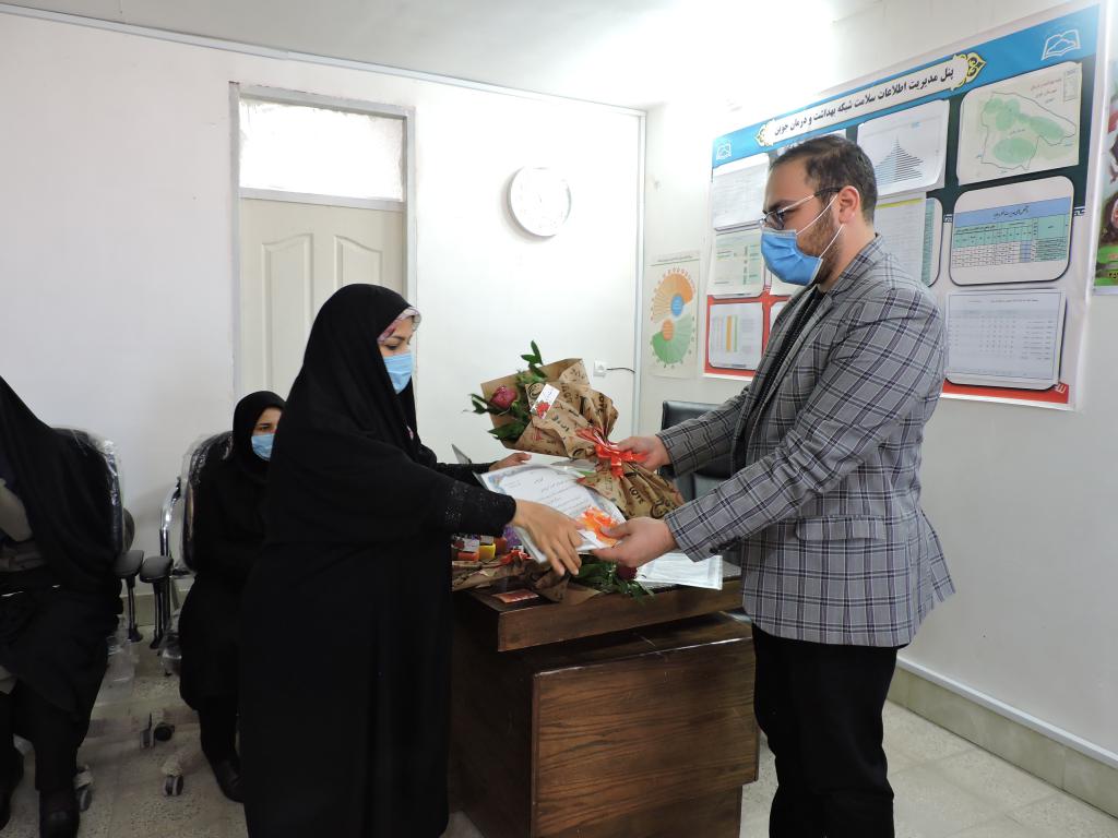 در این جلسه از خانم الهه مسعودیان به عنوان بانوی نمونه شبکه بهداشت و درمان شهرستان جوین و خانم معصومه شمس ابادی به عنوان بانوی نمونه بیمارستان قمر بنی هاشم(ع)تقدیر به عمل امد.