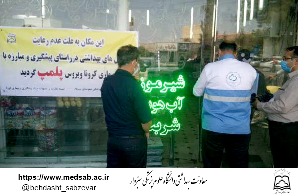 روابط عمومی معاونت بهداشتی / دکتر فاطمه نوده معاون بهداشتی دانشگاه علوم پزشکی سبزوار گفت: یک واحد قنادی در شهرستان سبزوار به علت عدم رعایت پروتکل های بهداشتی پیشگیری از بیماری کرونا ویروس توسط بازرسان بهداشت محیط این معاونت پلمب شد.