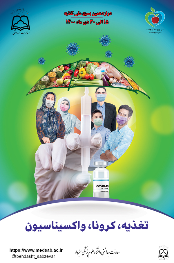 امسال نیز همانند سال های گذشته بسیج ملی تغذیه با شعار تغذیه، کرونا، واکسیناسیون؛ همزمان با سراسر کشور در دانشگاه علوم پزشکی سبزوار نیز برگزار می شود که فرصت مناسبی است تا آگاهی و عملکرد خانواده ها در خصوص تغذیه سالم برای ایمنی در برابر کرونا و عوارض را آن افزایش دهیم.