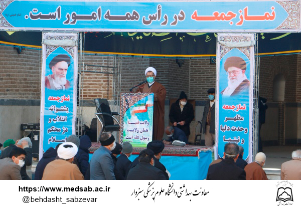 وی افزود: در روز جمعه تاریخ 19 دی ماه 1399 روابط عمومی وکارشناسان بهداشت محیط جهت نظارت بر پروتکل های بهداشتی از جمله استفاده از ماسک و رعایت فاصله گذاری اجتماعی نماز گزاران به محل برگزاری نماز جمعه مراجعه نمودند.